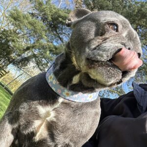 She is a beautiful French bulldog who has had a few changes of home, unfortunately she has been the victim of a dog attack and was at one point used for breeding too, all she hopes for is a calming and safe environment.