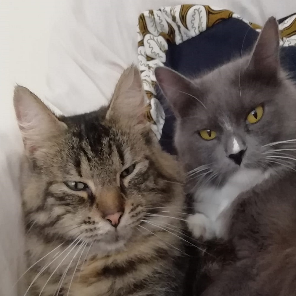 Fluffy is the grey and white girl, she is a little shy and relies on her friend Candy for comfort, though once settled the two are inseperable mischief makers! Candy is the more confident of the two, and very playful and active.
