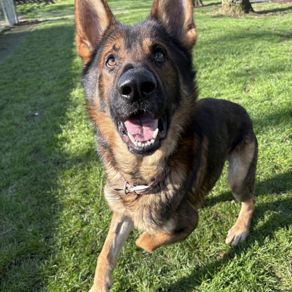 Moosh was born with only 3 legs but that has never stopped him living a happy life. He loves his walks and ball games and can still give you a good run around. Moosh has been described as the most gentle of boys, and a bundle of joy and fun.